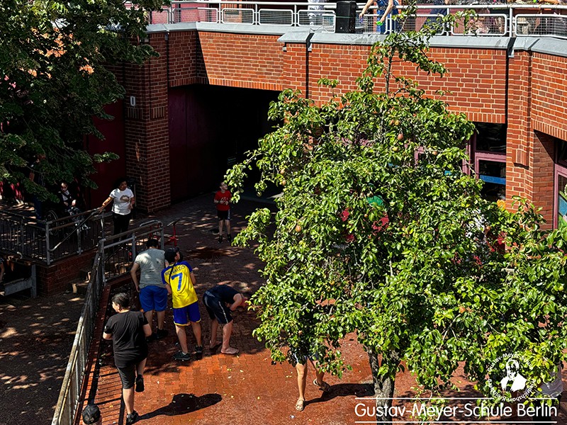 Zu Beginn der großen Pause hatten sich die Großen noch einen Schabernack ausgedacht: Sie warfen Bonbons und Wasserbomben auf den Schulhof!
