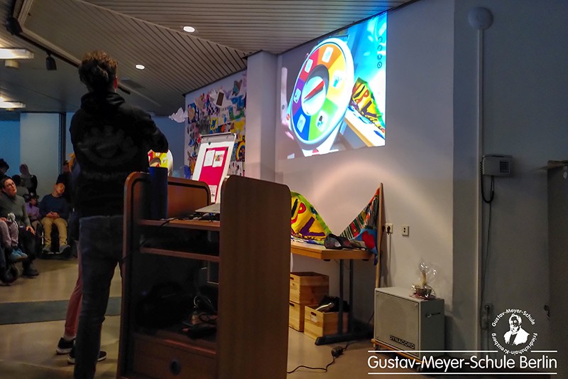 Dann gab es noch eine Vorstellung von getesteten UK-Spielen  von der O-Stufe und ein Gebärdenlied der M-Stufe. Und die UK-Wand wurde präsentiert, gebaut von der Abschluss-Stufe mit tollen Effekten wie Licht und Ventilator.