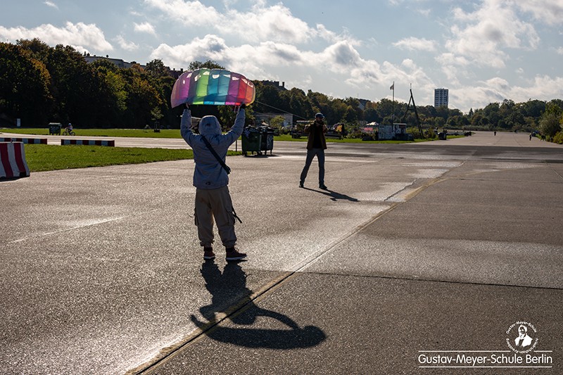 Am Mittwoch zogen die Klassen der Gustav-Meyer-Schule zum Tempelhofer Feld. Dort ließen die Schüler ihre zum größten Teil selbst hergestellten oder gestalteten Drachen bei herrlichstem Frühherbstwetter und prima Wind steigen. Es gab eine Jury unter der Leitung von Herrn Loth, die jeden Drachen begutachtete und bewertete und man darf gespannt sein, welche Klasse am Freitag den Drachen-Wanderpokal abräumt!