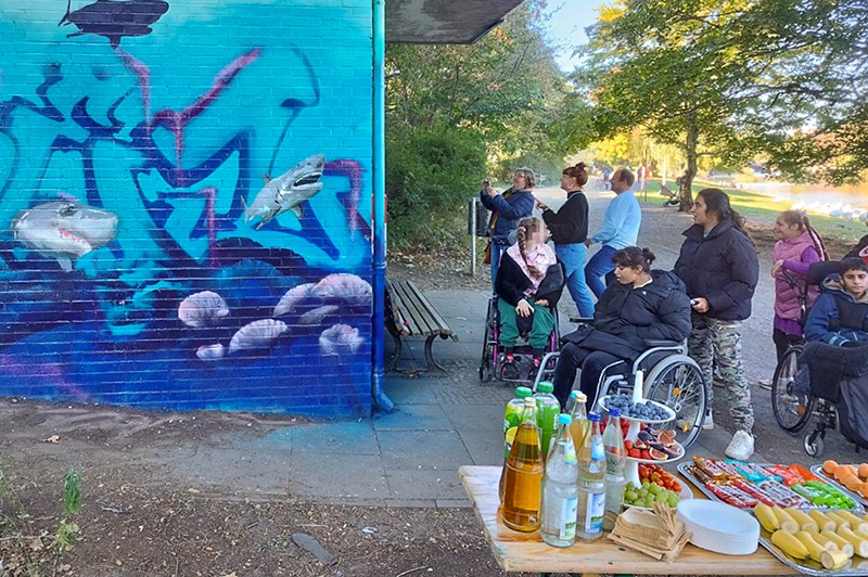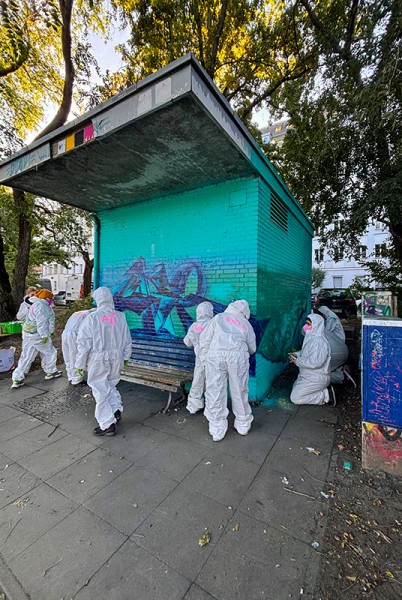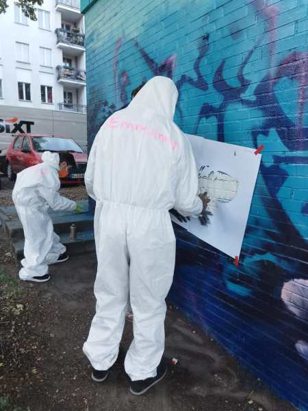 In diesem Jahr war auch die Gustav-Meyer-Schule beteiligt. Schülerinnen und Schüler der Abschlussstufen rückten dem Stromkasten am Planufer 77 auf den grauen Pelz. Innerhalb von 3 Tagen in der Woche vom 22.-26.09.25 wurde er zu einem Hingucker: