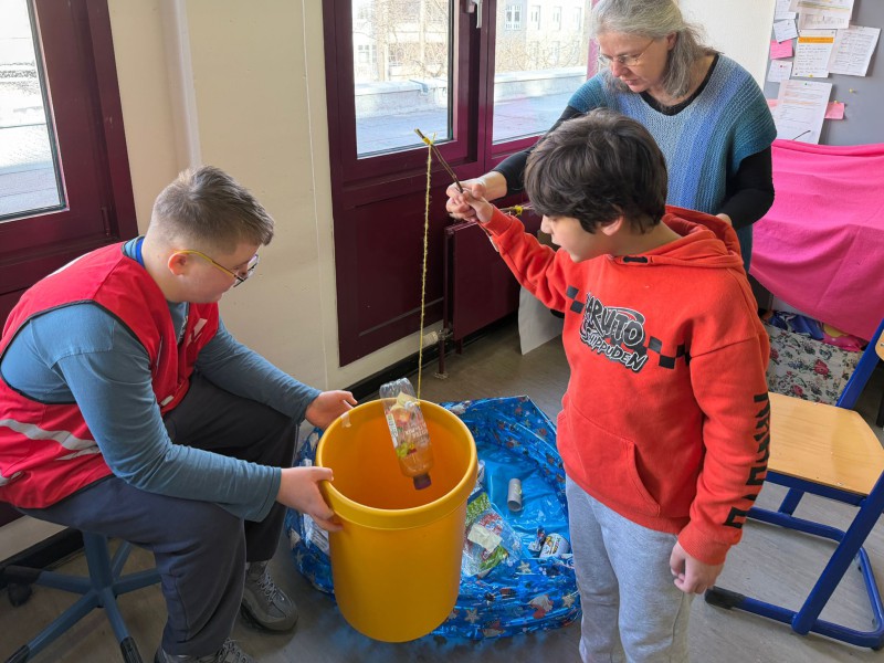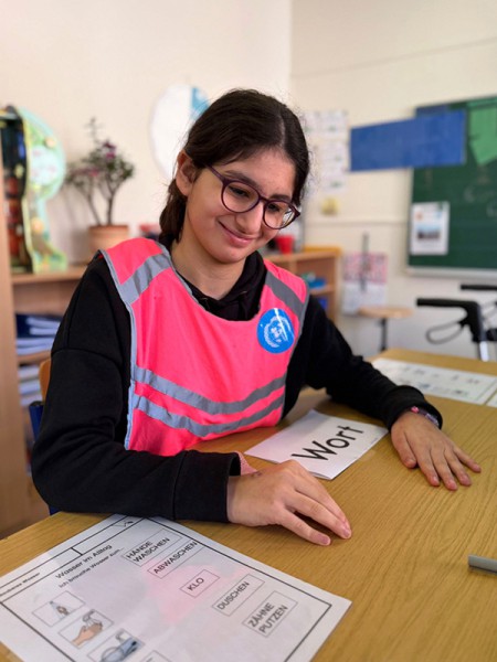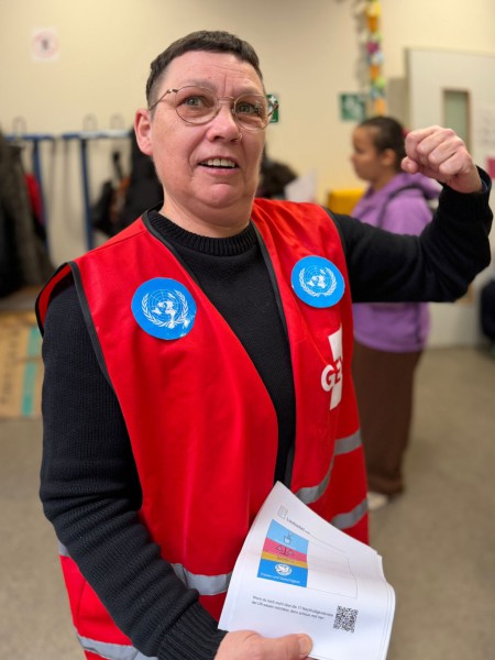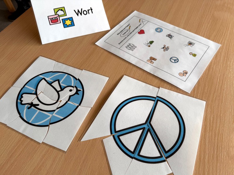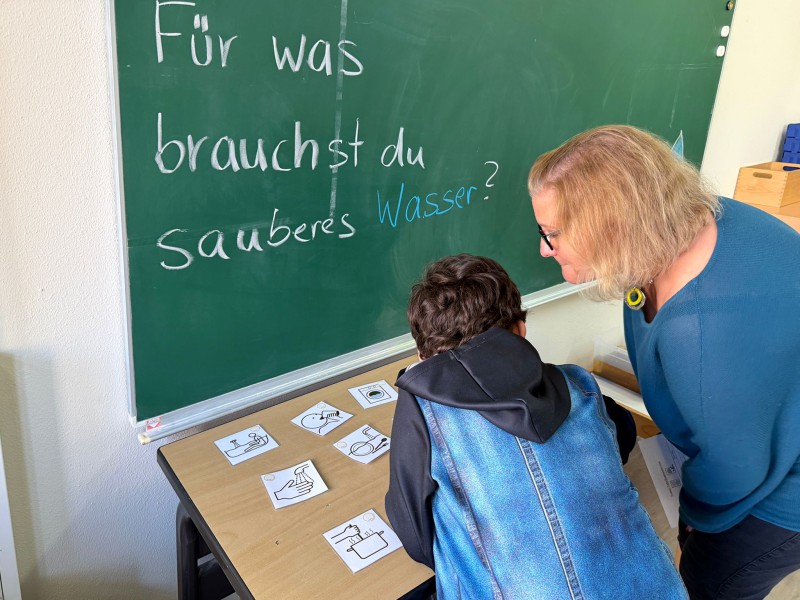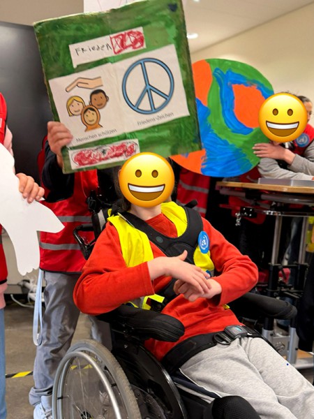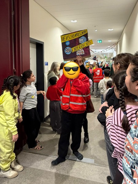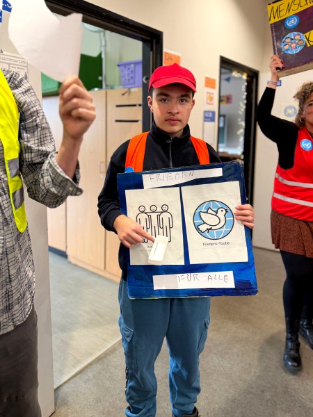 Zum Einstieg gab es eine Demo für eine bessere Welt und einen Song. Dann konnten die Schülerinnen und Schüler der anderen Klassen zu den vier ausgewählten Zielen arbeiten. Es gab in jedem Klassenraum eines der Ziele auf fünf Niveaustufen und die Schüler gingen selbstständig oder mit ihrem Lehrpersonal herum und ordneten sich entsprechend ihres Könnens zu.